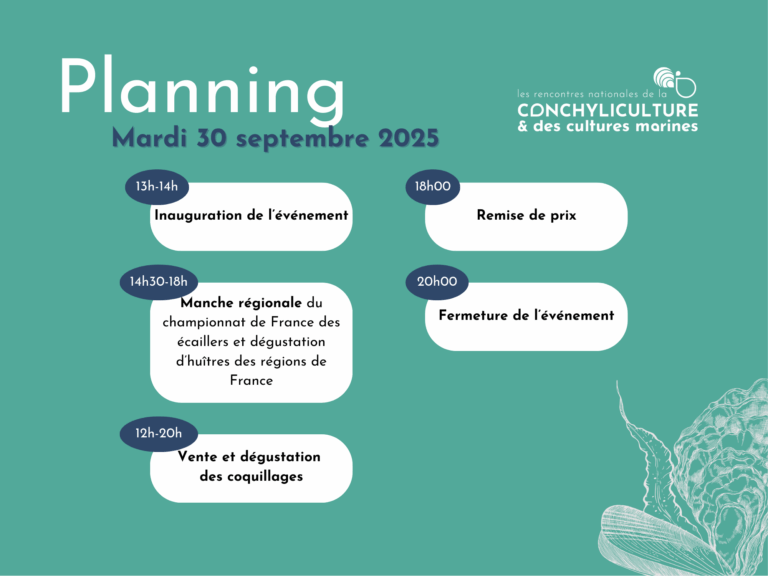 Dégustation de coquillages et animations : Des ostréiculteurs et des mytiliculteurs seront présents sur le port et proposeront à la vente et à la dégustation des coquillages. D’autres stands, portés par des acteurs locaux, seront également présents sur le port pour échanger avec les visiteurs sur la filière.